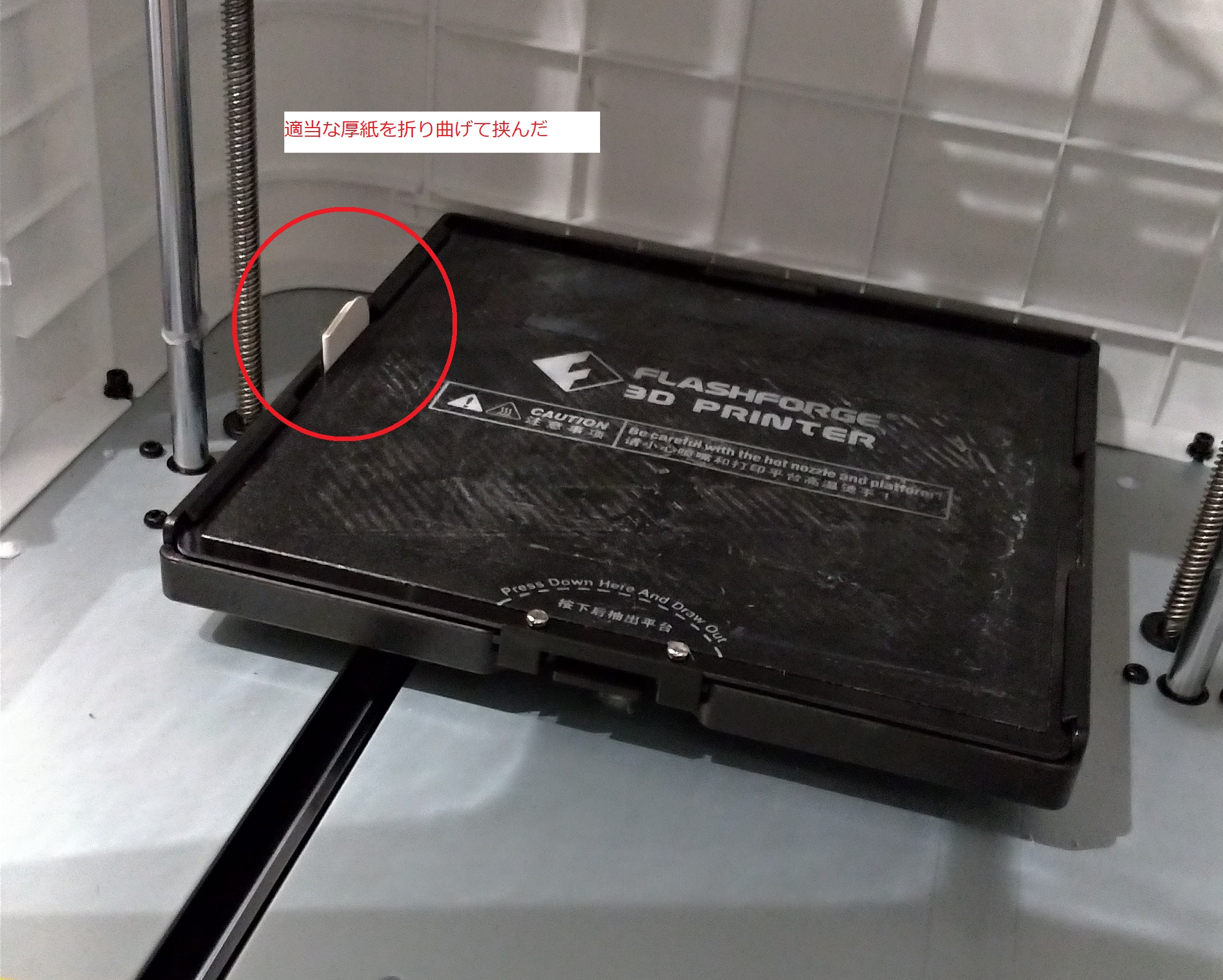 とりあえず、厚紙を隙間に挟んでみた。