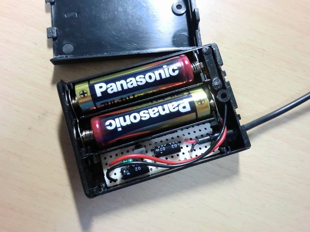 単三電池が3個入る電池ボックスの電池1個分に回路を入れてみました。