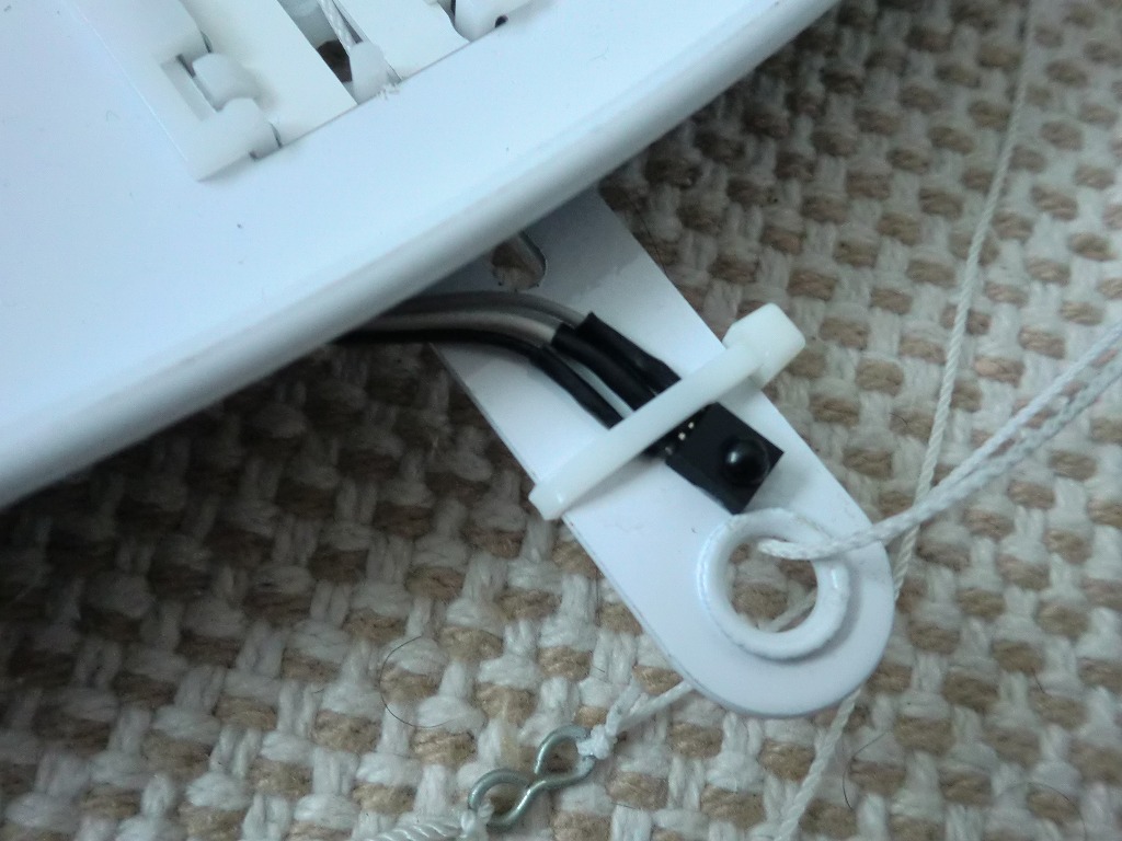 中:蛍光灯に固定したところ。タイラップで強引に固定・・・