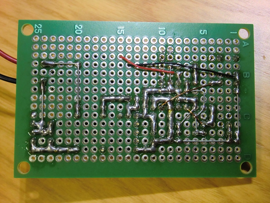 基板ですが、製作途中で色々と修正したので配線が大回りしてます。ハンダ付けしてないとこあるし。動いたから良しとする。
